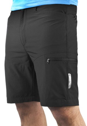 Comfortable and lightweight, these shorts are perfect for commuting cyclists and active individuals. With a relaxed fit, the lightweight fabric allows great flexibility and comfort for all activities and the six-pocket design is great for stashing your U-Lock key, some nutrition bars, your smartphone, and anything else that you carry with you on the bike, down the trail, or in the gym. The waistband features an adjustable belt for a secure fit and the rear belt loop includes an additional loop for attaching a beacon bike light. In addition, reflective tabs on the legs enhance visibility during early morning commutes and late-night group rides. The soft nylon/spandex fabric dries quickly in case you find yourself caught in the rain during a bike ride or knee-deep in a mountain stream during a hike.
